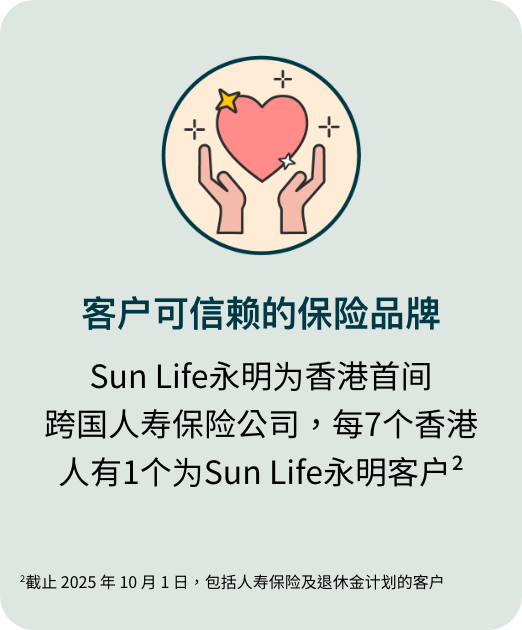 于1892年始于加拿大,Sun Life永明扎根香港超过130年,累积了丰硕的财富策划与提供保障方案经验。 秉承着母公司的传统和实力,我们以成为全球客户信赖的终身合作伙伴为荣。 深植不断创新的基因,我们持续优化服务、产品,以及客户体验,致力于让客户的每个人生阶段,活出所想,闪耀每个当下,迈向更美好的未来。
