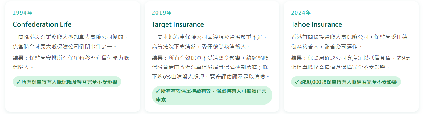 即使保險人出現問題,保監局亦會介入保障你嘅利益。歷史上,保單持有人從未因保險人倒閉而損失保障或儲蓄。